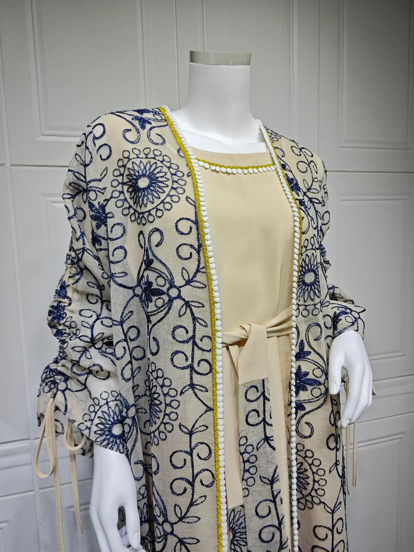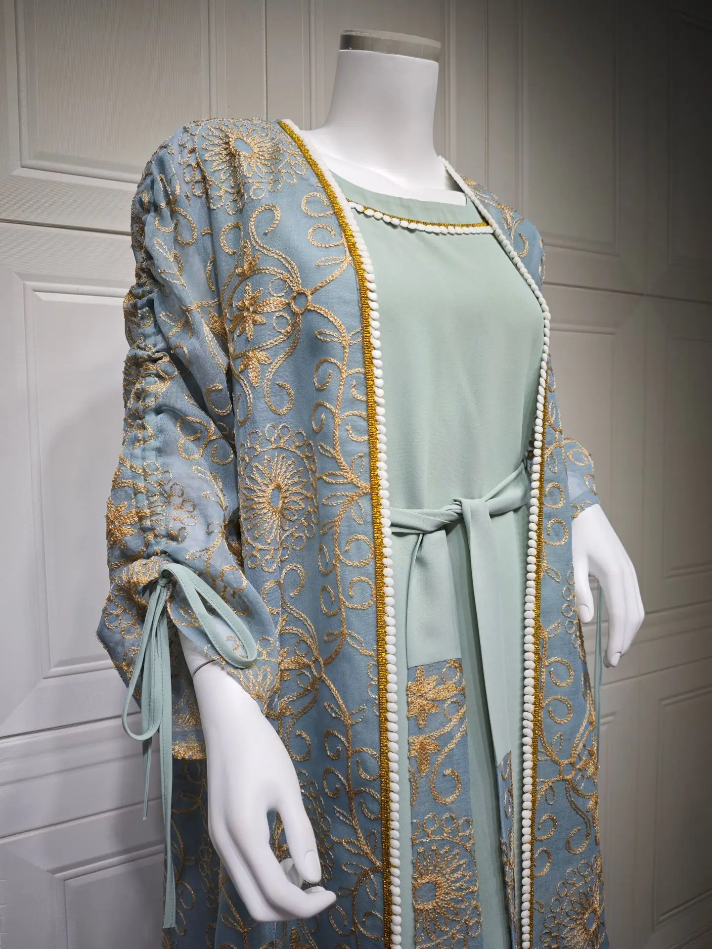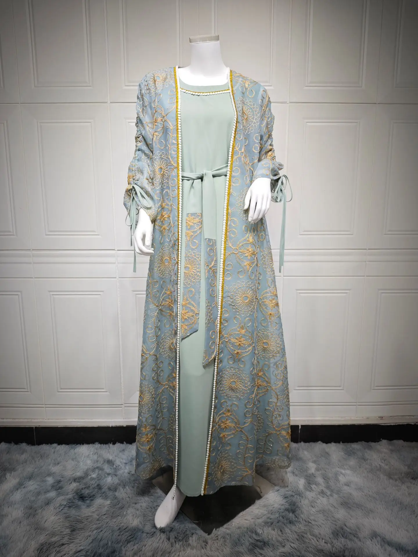 Jalabiya Muslim Dress Middle East Woman Robe Two-piece Set Saudi Arabia Dubai Abaya Evening Dresses Real Picture