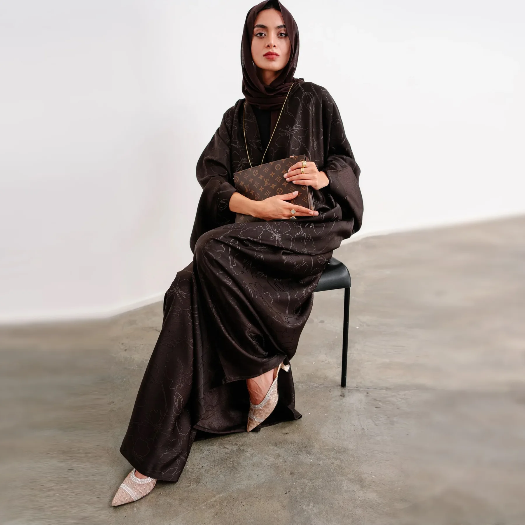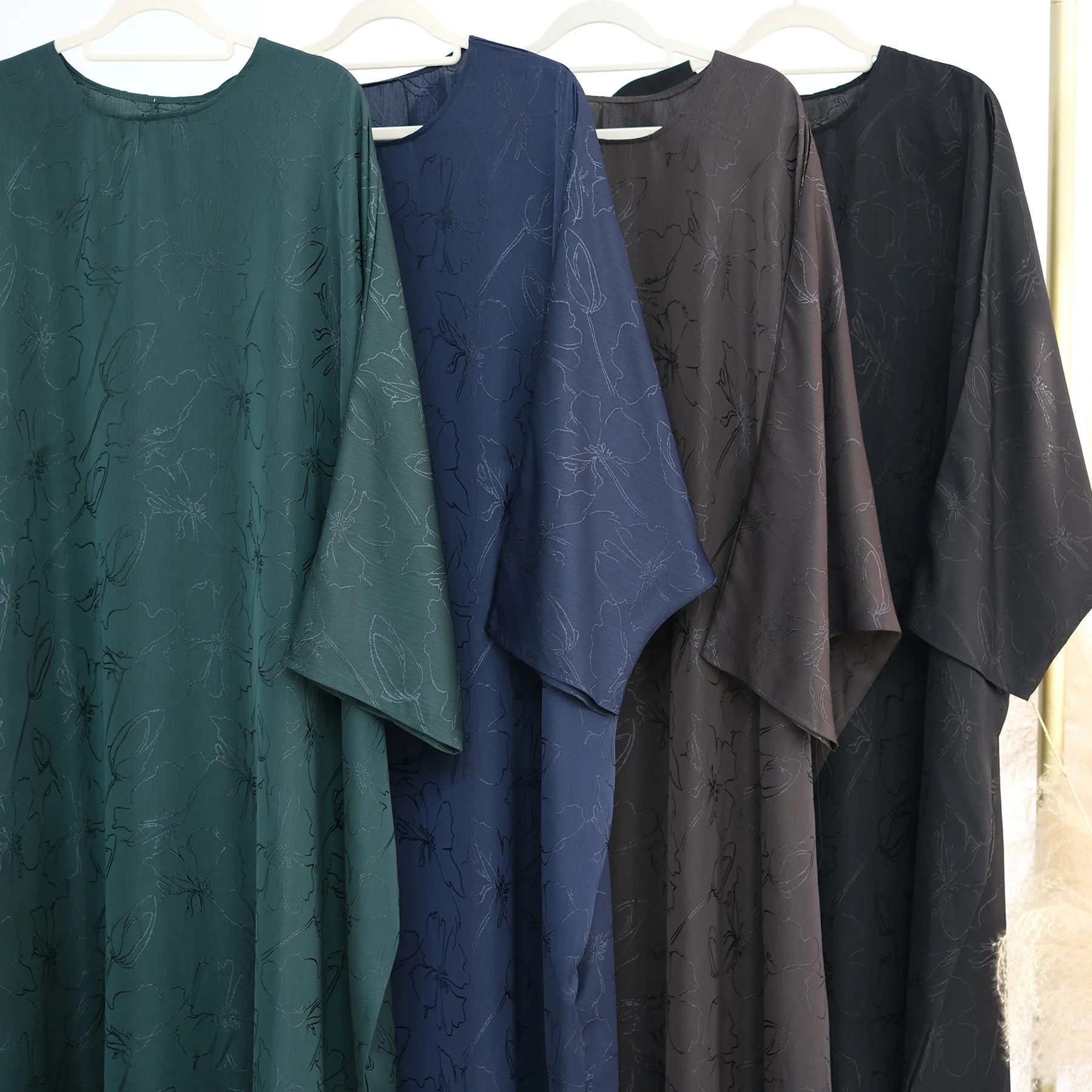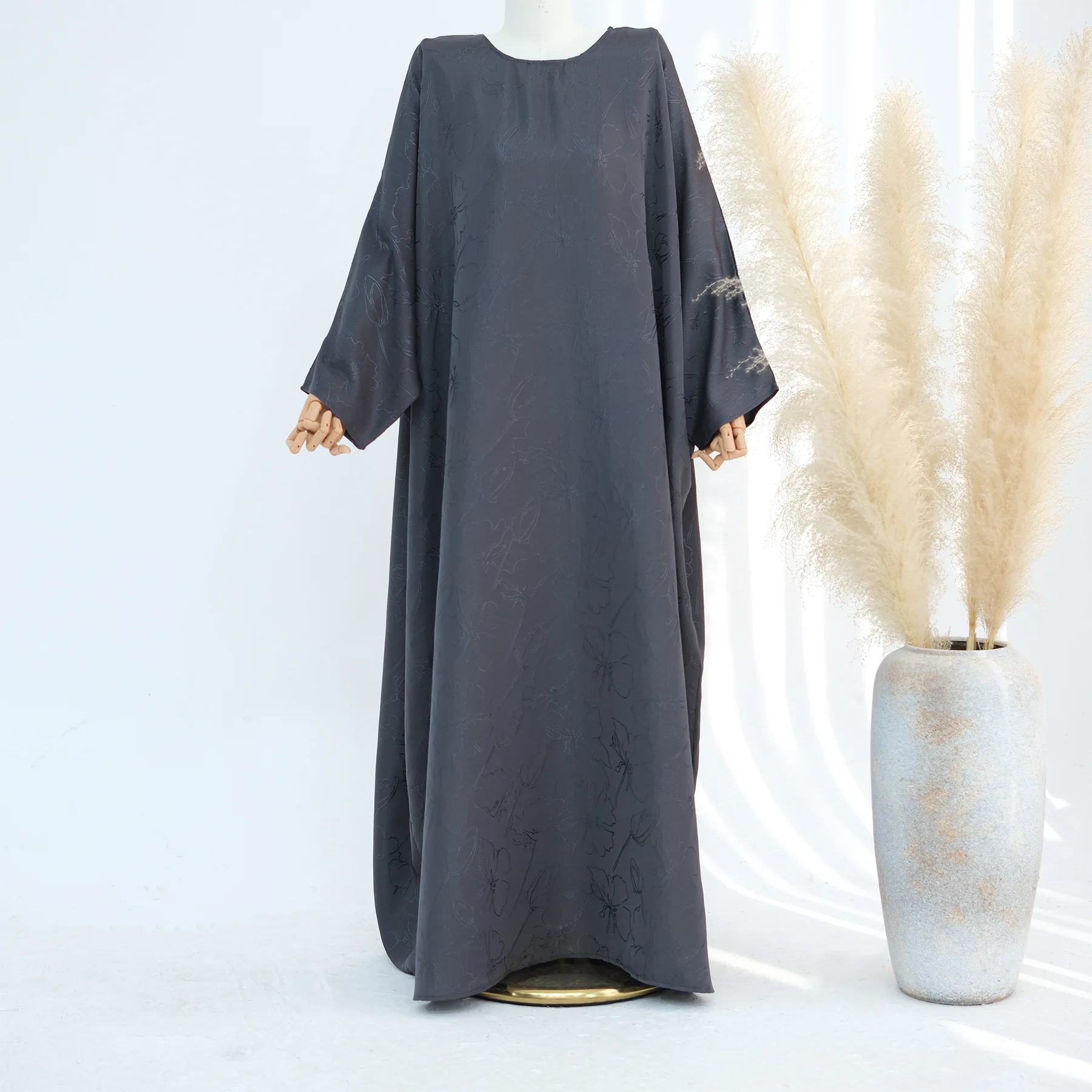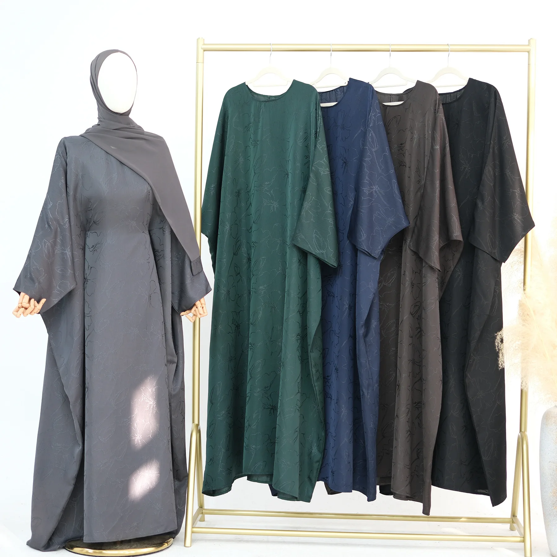 Middle East Dubai Turkey Fashion Jacquard Dress Women Muslim Long Loose Maxi Dress Abaya Robe Solid Color Elegant